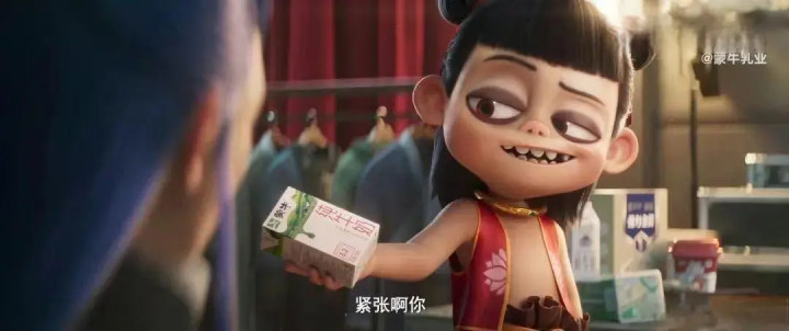 蒙牛成为电影《哪吒2》的首席合作方,受到了专属的营销待遇。影片的导演团队精心为其制作了三条动画风格的广告,巧妙地将蒙牛的纯牛奶、奶粉、未来星、真果粒等系列产品融入其中。这些广告不仅保留了原电影的动画元素和角色,还具备连贯的故事情节,仿佛是电影的番外篇。在电影放映前,观众们有幸在电影院的大屏幕上观赏到这些别具一格的广告。社交网络上,观众们也自发制作了“番外篇合集”进行分享,显示了广告的极高人气。在微博平台上,广告的播放量已超过2.1亿次。据数据显示,自1月28日除夕起,蒙牛的搜索热度持续攀升。京东超市在2月7日公布的数据显示,蒙牛与《哪吒2》联名推出的三款牛奶产品自电影上映以来销售额已突破500万元,其中以蒙牛哪吒IP纯牛奶的销量最为突出,蒙牛A2哪吒IP款的增长速度最为迅速。